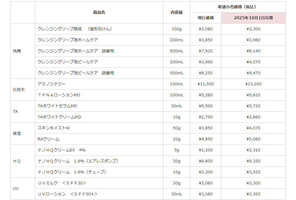 メーカーの価格改定に伴い、プラスリストア製品が2025年10月1日(水)より新価格でのご案内となります。