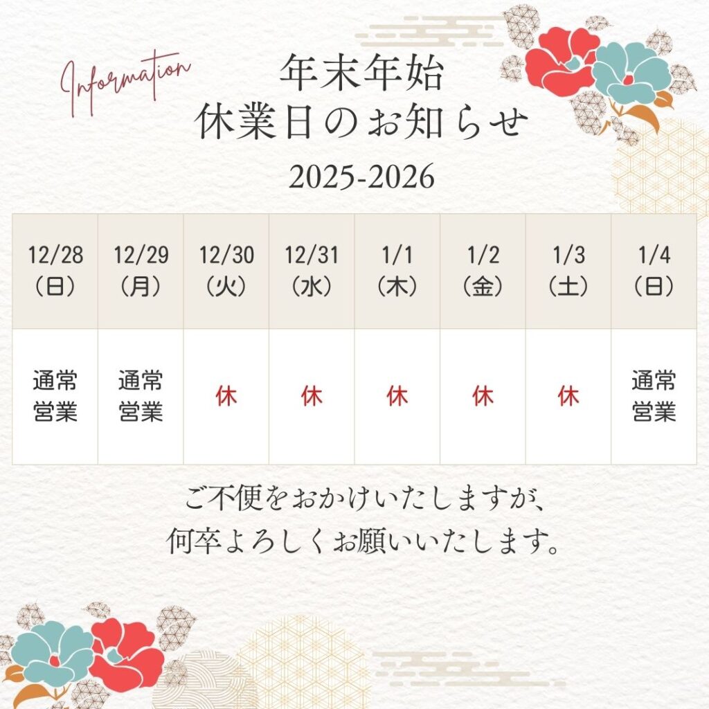 2026年も引き続き、より一層ご満足いただけるサービスを目指して参りますので、どうぞよろしくお願いいたします✨