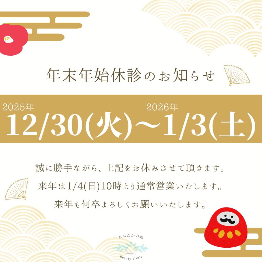 また、2025年12月30日(火)~2026年1月3日(土)まで年末年始休診となります。
