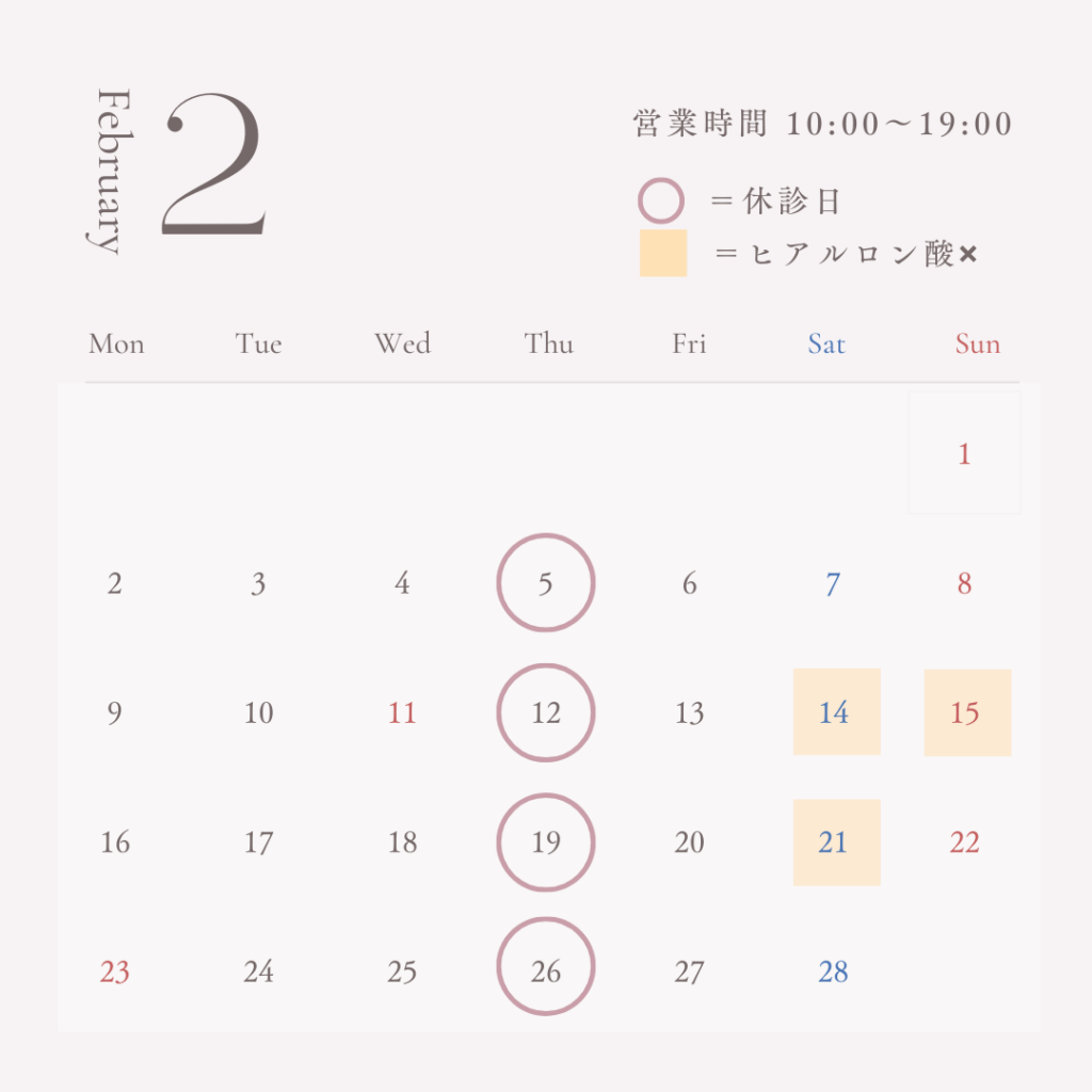 💉ヒアルロン酸施術 対応不可日 → 14日、15日、21日